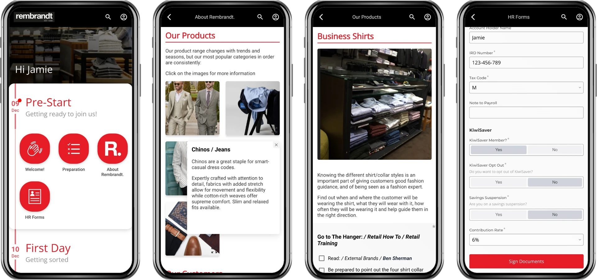 Although Rembrandt’s staff turnover is low for a retailer, like many retail businesses, Rembrandt's onboarding was entirely manual. Contracts and forms were created, signed, and emailed individually, leading to inefficiency, delays, and administrative headaches. New hires received minimal information about Rembrandt before their first day, and store managers often felt disconnected from the induction process. "It was a big pack of paperwork," recalls Lisa Cardno, Company Accountant. "Stressful for everyone."